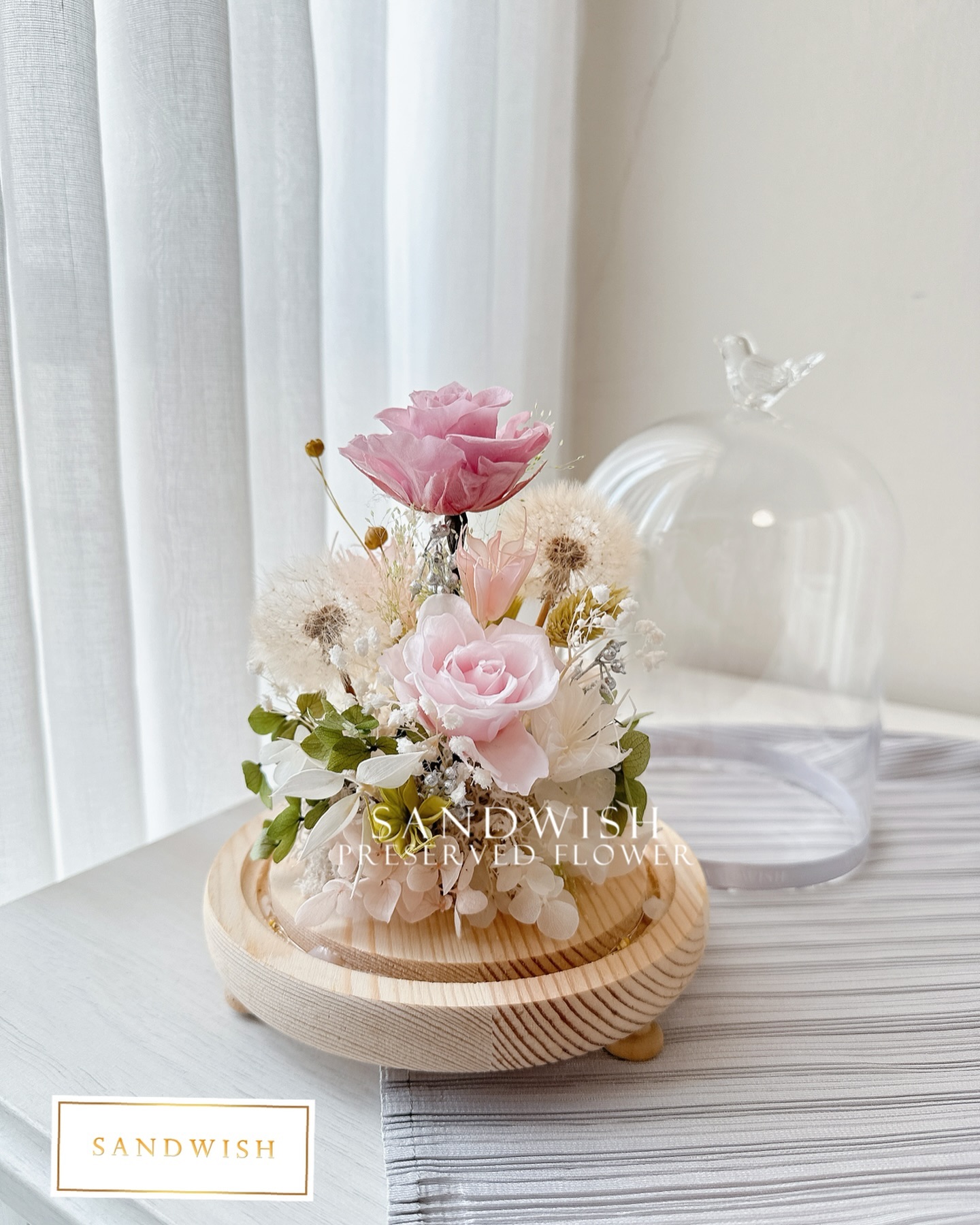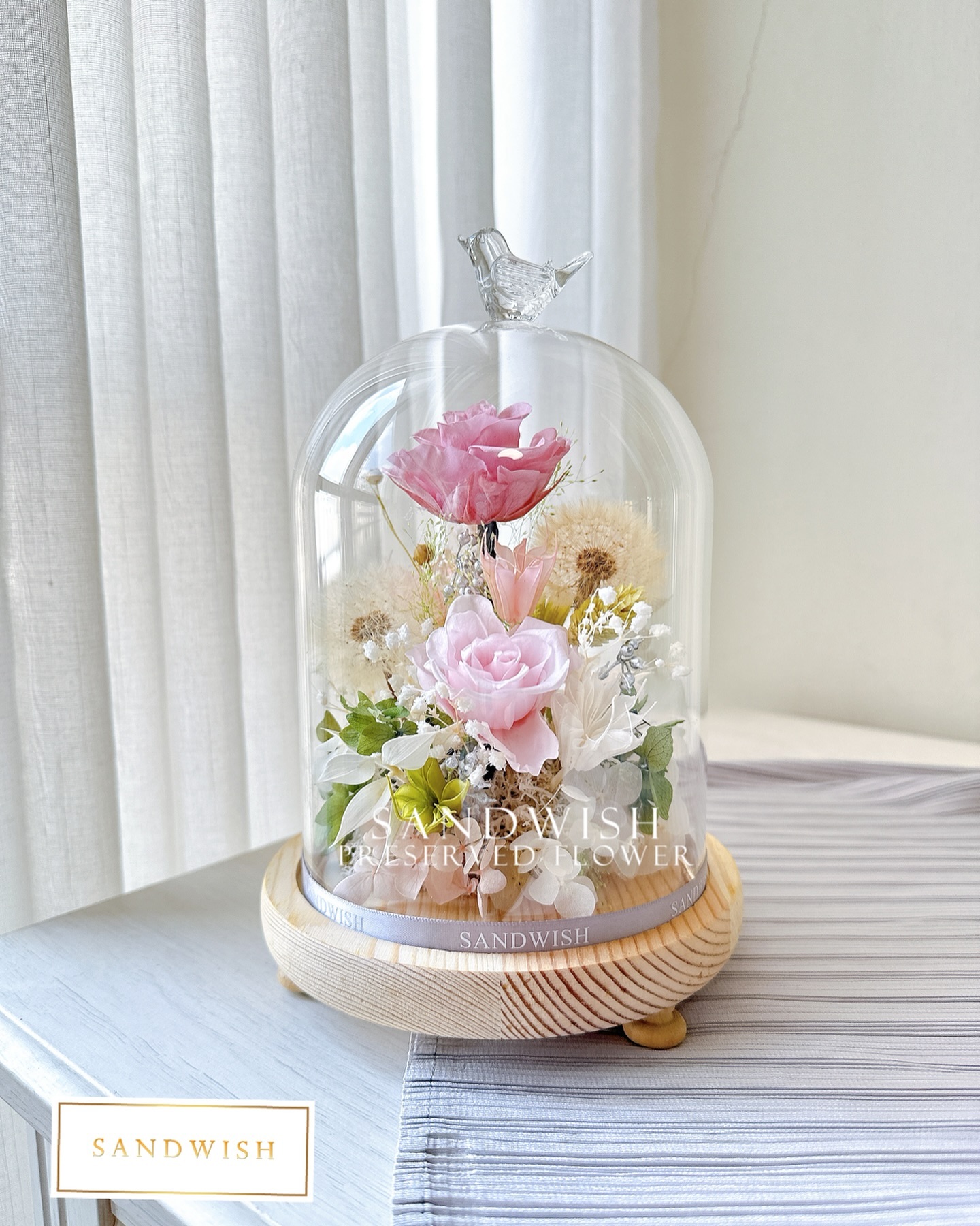 永生花罩鐘-蒲公英永生花(中型)
