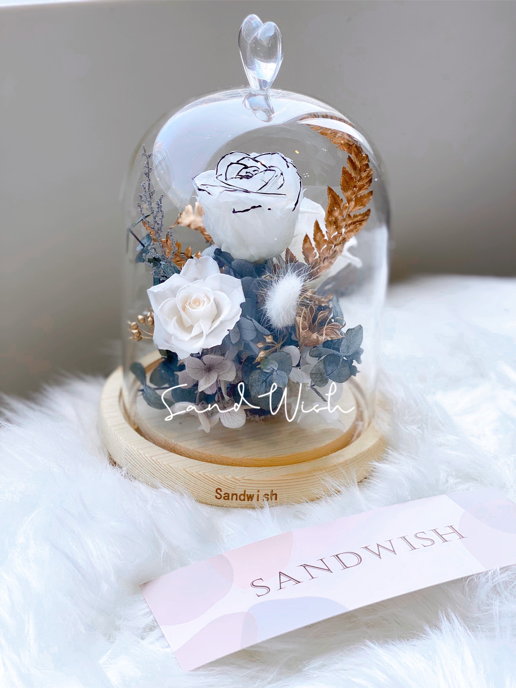 永生花玻璃夜燈-山茶花白玫瑰(中型)
